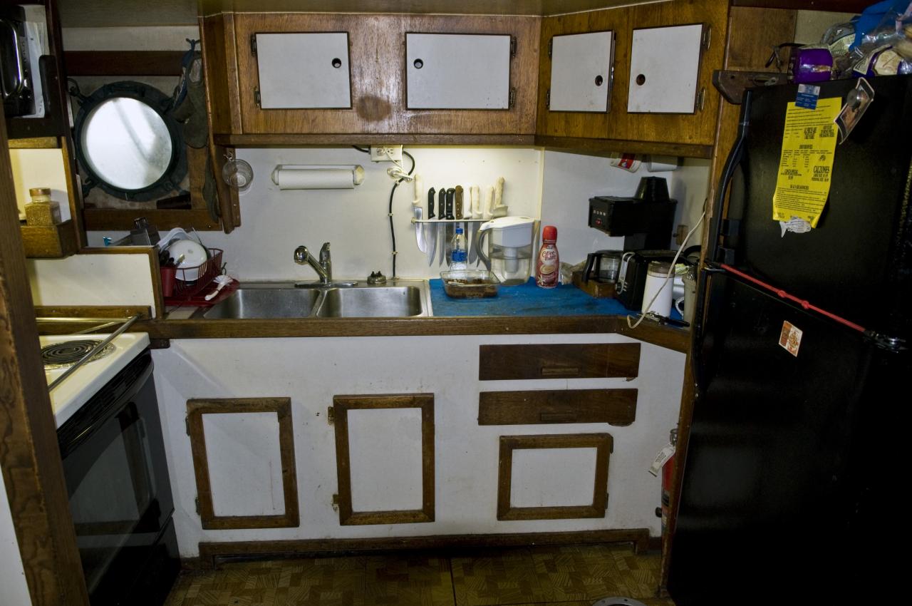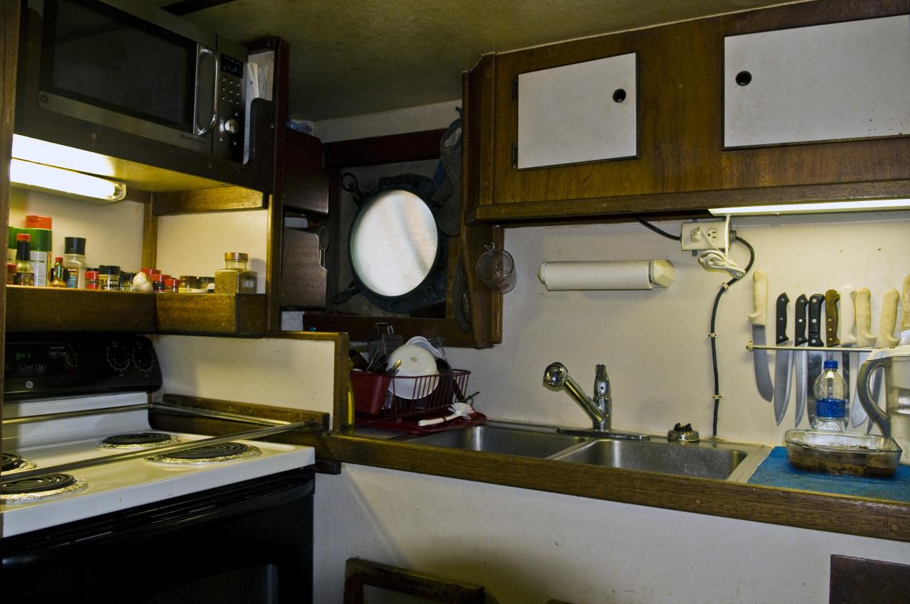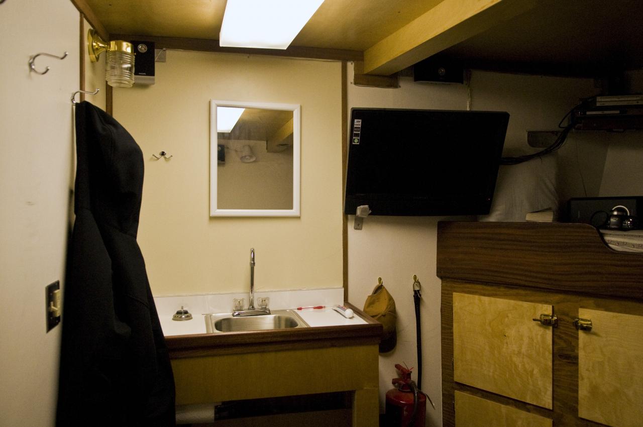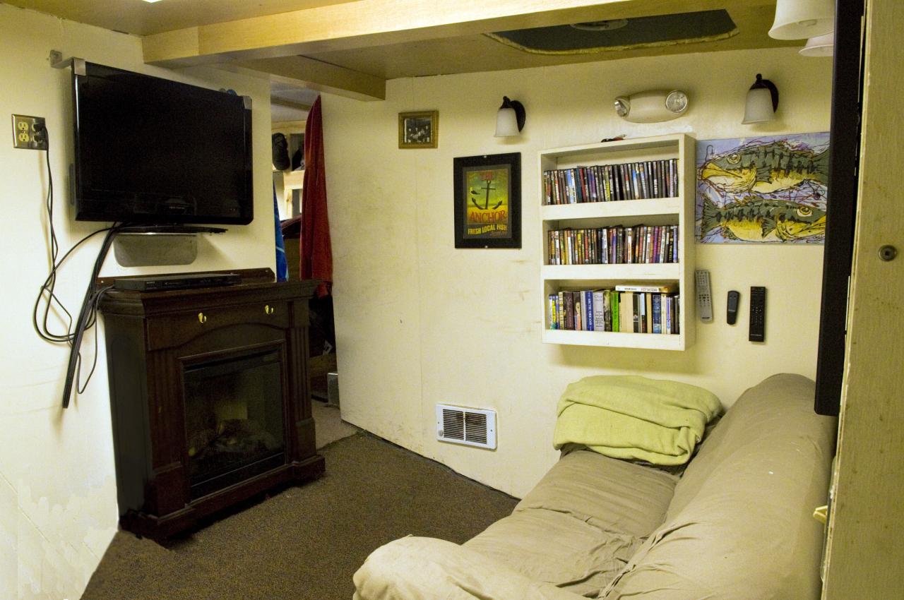 The Gold Rush can accommodate 10 people on board at max. We have a bunk room that sleeps 4 people , and then we have two state rooms with two bunks in each. One state room has a bathroom and the other is located by the main bathroom. The third state room is the captains room and is not availible. All state rooms have there own sinks and vanietys. We have a full kitchen and galley with everything you would need. We also have a small living room with a electric fire place and a flat screen tv. There is also flat screen TV's in all the state rooms and the galley.