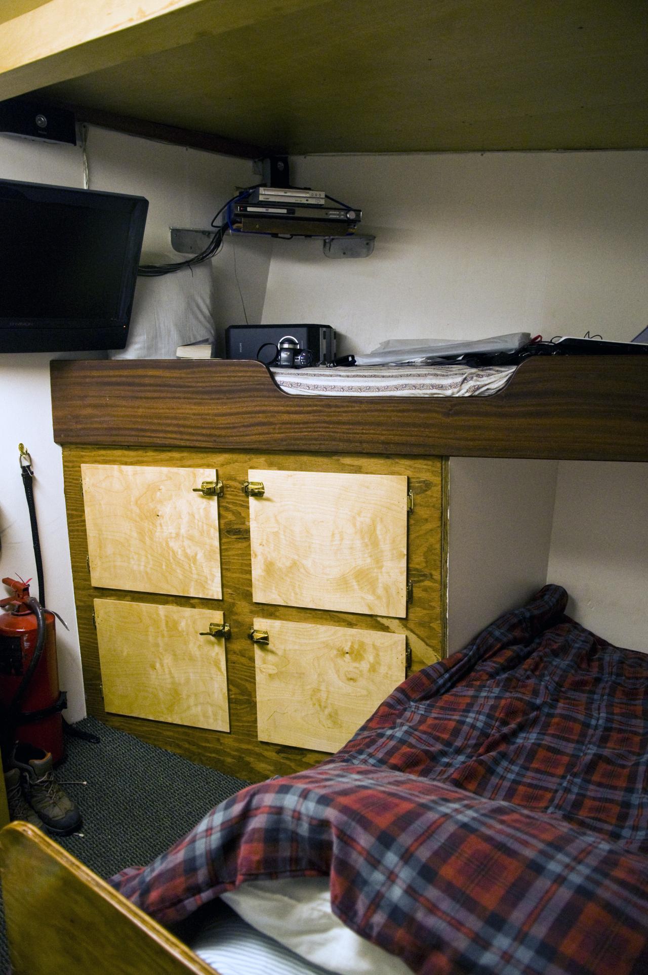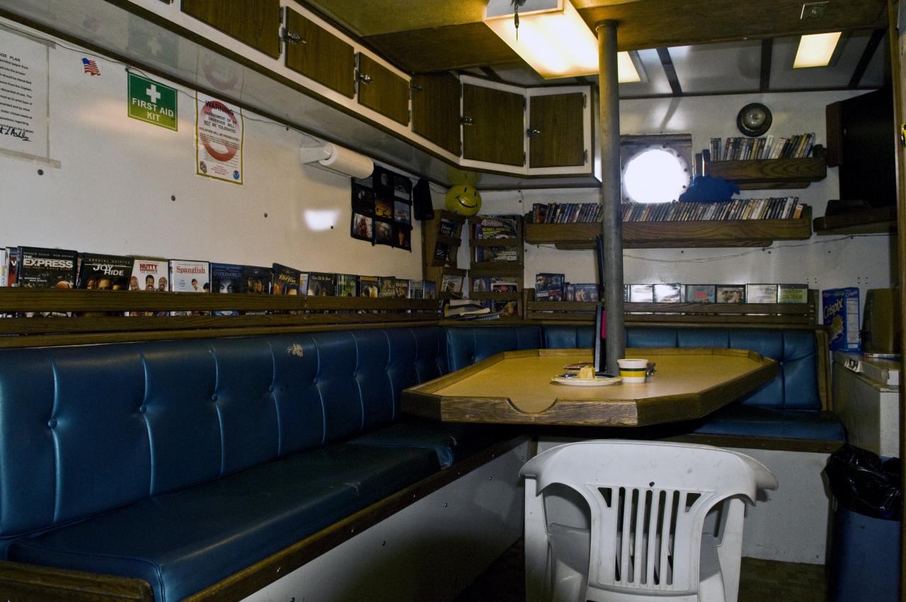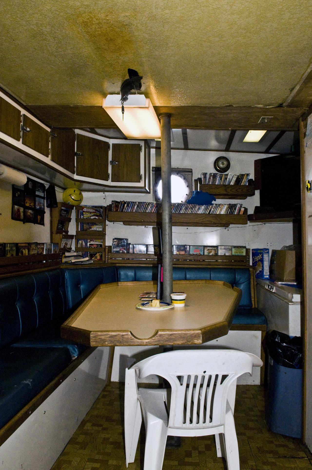 The Gold Rush can accommodate 10 people on board at max. We have a bunk room that sleeps 4 people , and then we have two state rooms with two bunks in each. One state room has a bathroom and the other is located by the main bathroom. The third state room is the captains room and is not availible. All state rooms have there own sinks and vanietys. We have a full kitchen and galley with everything you would need. We also have a small living room with a electric fire place and a flat screen tv. There is also flat screen TV's in all the state rooms and the galley.